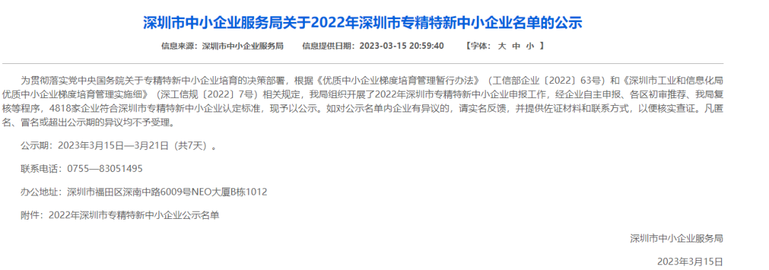近日,深圳市中小企業(yè)服務局發(fā)布了2022年度深圳市“專精特新”企業(yè)公示名單,經(jīng)層層篩選,專家嚴格審核,服務局復核等程序,魯班長憑借在智慧工地領(lǐng)域中雄厚的技術(shù)研發(fā)實力與產(chǎn)品創(chuàng)新能力榮獲“深圳專精特新”企業(yè)認定